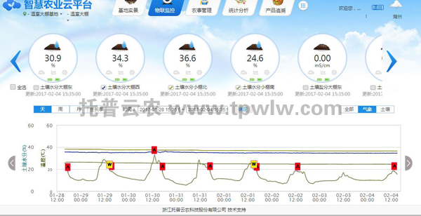 浙江托普云農水肥一體化監控系統能夠實時監測基地大蔥的種植環境,實現智能化、定時定量的灌溉,其中包括系統云平臺、視頻監控系統、采集終端、施肥機、過濾系統、閥門控制器、電磁閥、田間管路等。系統所采集的數據實時上傳到托普智慧農業云平臺,并快速進行統計分析,解決了工作人員對數據的采集分析需求,并確保了數據采集的精準、快速、全面。用戶可通過手機APP和電腦端遠程實時查看基地現場視頻、水肥流量統計數據,也可遠程手動設置水肥參數,很大程度上提高了灌溉用水效率。