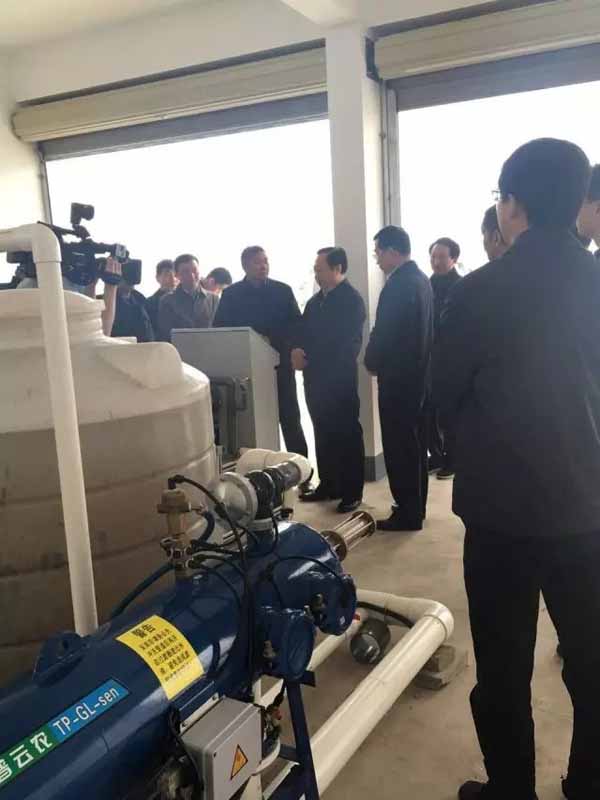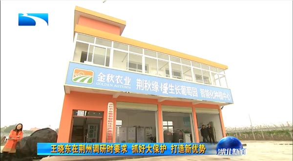 湖北省委副書(shū)記、代省長(zhǎng)王曉東在荊州市市委書(shū)記李新華、市長(zhǎng)楊智等領(lǐng)導(dǎo)陪同下蒞臨金秋農(nóng)業(yè)智能化葡萄示范基地調(diào)研現(xiàn)代農(nóng)業(yè)發(fā)展情況。饒有興趣的參觀了"智能化中心"水肥一體化設(shè)施,了解托普云農(nóng)水肥一體化的精準(zhǔn)生產(chǎn)過(guò)程。
