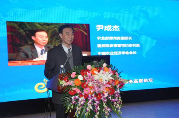 農業部原常務副部長、國務院參事室特約研究員、中國農業經濟學會會長尹成杰作大會主旨報告