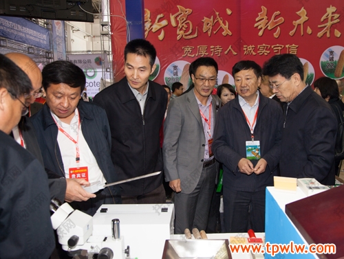 圖為:托普總經(jīng)理陳渝陽先生引領(lǐng)農(nóng)業(yè)部種子管理局張延秋局長(右二),吉林農(nóng)委李國強(qiáng)主任,全國農(nóng)技推廣服務(wù)中心黨委杭大鵬(右四)書記等領(lǐng)導(dǎo)參觀公司展臺(tái)