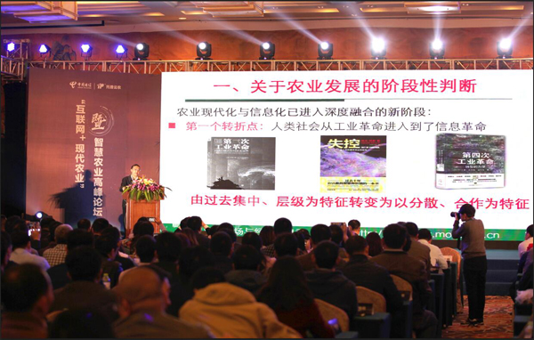 大家早上好。今天的高峰論壇很有創新,大家發現了沒有,互聯網+現代農業,立足當下,后邊還跟著智慧農業,是發展目標,跟中央文件,直接打在了現代農業后面,+放在了上面很有創新。