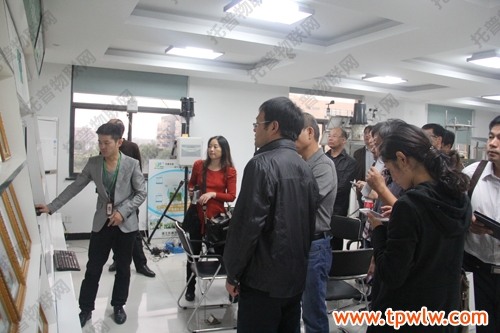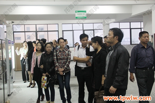 圖為:參會(huì)嘉賓在樣品室聽取托普農(nóng)業(yè)物聯(lián)網(wǎng)介紹,并表現(xiàn)出了對該系統(tǒng)的濃厚興趣