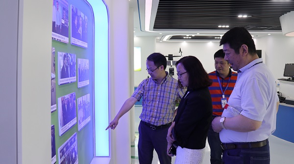 在托普云農的展廳里,朱副總經理向領導一行詳細匯報了托普云農在數字農業農村方面取得的一些技術成果,及其在產業化應用探索上的成功案例。