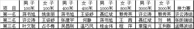 此次田徑運(yùn)動(dòng)會(huì)分為男子100米、女子100米;男子400米,女子400米;男子1000米,女子800米;男子3000米,女子3000米;男女混合4*200米接力賽。賽制為,初賽?。拷M取前兩名和成績最好的兩名共六名人員進(jìn)入決賽)前三名進(jìn)入決賽,決賽取前三名為獲獎(jiǎng)選手。上午9:10,運(yùn)動(dòng)會(huì)在女子400米初賽中拉開帷幕。