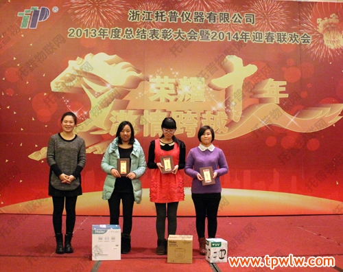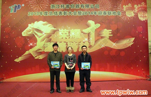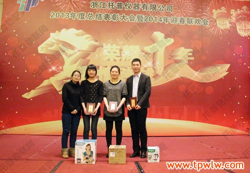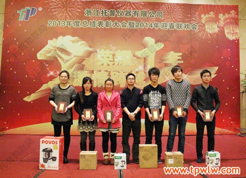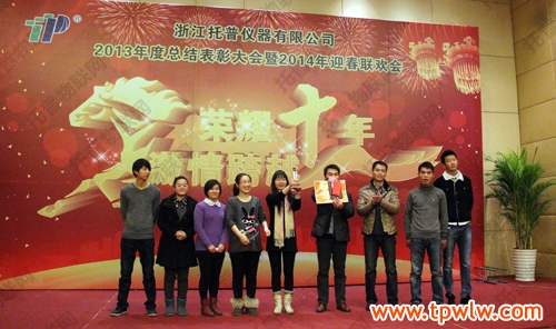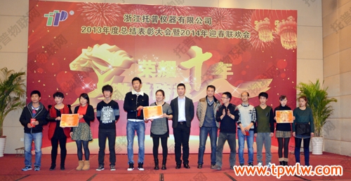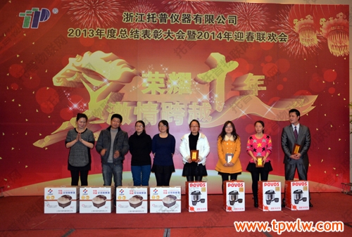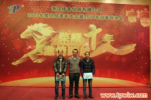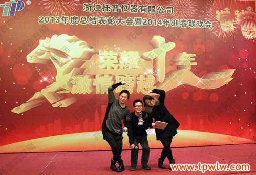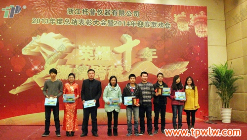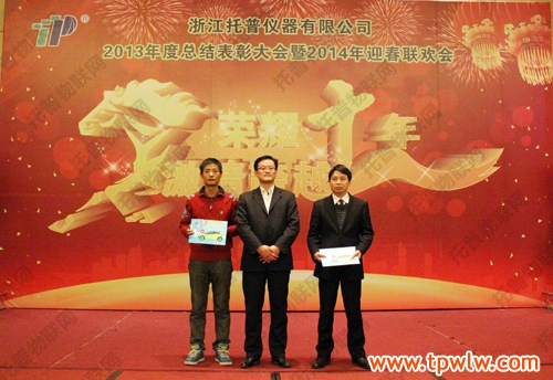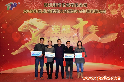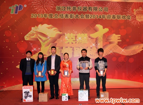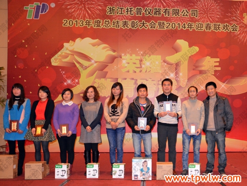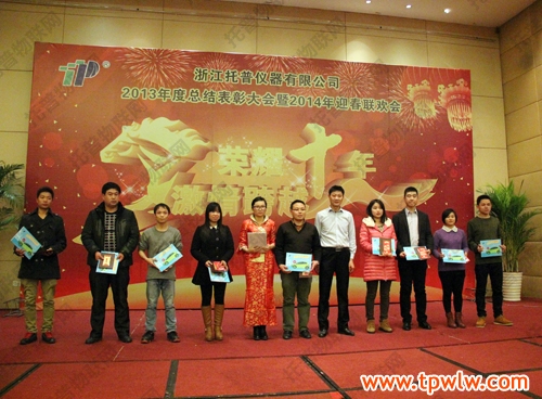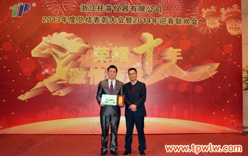 2013年1月24日,浙江托普儀器有限公司2013年度工作總結大會在海外海.納川大酒店隆重召開。經過一上午的計劃總結大會后,下午迎來托普10周年之表彰大會。會議由銷售部張文超主持,表彰大會在奮進的進行曲中拉開了序幕。