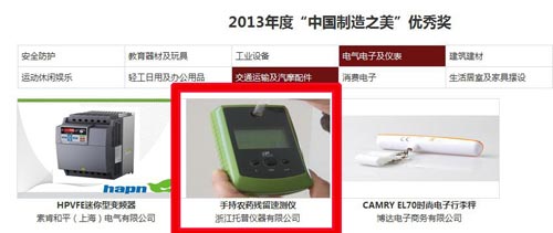托普儀器產(chǎn)品“手持農(nóng)藥殘留速測儀”也參加了此次全國性工業(yè)設(shè)計大賽的角逐,并憑借外觀設(shè)計優(yōu)勢榮獲了2013年度“中國制造之美”優(yōu)秀獎,贏得了主辦方--中國制造網(wǎng)面向國內(nèi)外采購商的全渠道商業(yè)推廣和與數(shù)百萬中國制造網(wǎng)會員企業(yè)對話交流設(shè)計心得的機會。