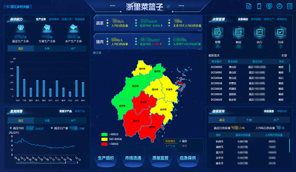 作為首個菜籃子保供數字化平臺,“浙里菜籃子”構建了“平時+戰時”“常態+應急”“政府+市場”的保供機制。在“平時常態”下,圍繞生產和流通兩端主體,做好生產服務、政策支持、動態監測、質量監管和市場監管,促進產銷有機對接,形成生產保供、質量監管和市場保供三大能力。在“戰時應急”下,按照監測預警模型,在出現異動時,緊急啟動應急預案,一是快速掌握應急需求;二是根據需求,迅速組織本地保供基地開展應急生產、組織外埠保供基地開展應急調運;三是把儲備產品、物資,生產出來的產品、外埠調運的產品進行應急配送,確保短期內送到居民手中;同時,及時發布推送保供權威信息,合理引導輿論導向和大眾預期,讓老百姓心里有數,心中不慌。