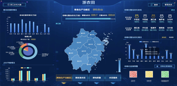 “浙農田” 圍繞農田政府管理和服務主體重要需求,聚焦數字賦能和綜合集成,打造糧食生產功能區管護、農田建設管理、耕地質量管理、農田服務多場景應用,實現對農田“建、管、服”全鏈條監管,推進農田整體智治。