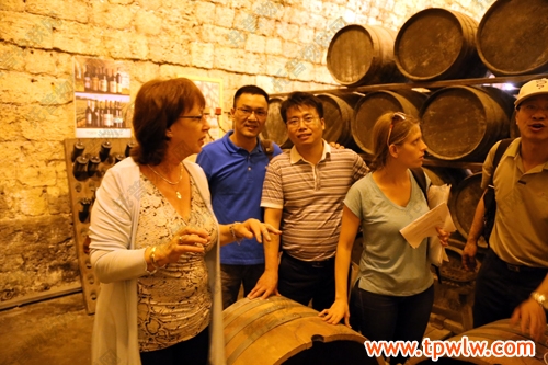圖為:托普儀器陳渝陽總經理(左二)隨考察團參觀葡萄酒廠