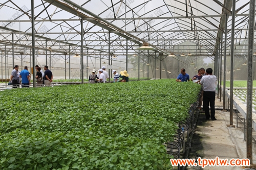 圖為:考察團考察無土栽培種植技術