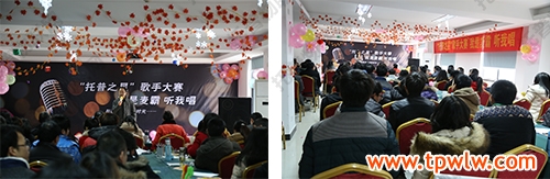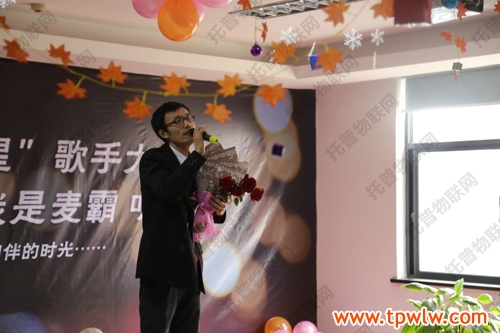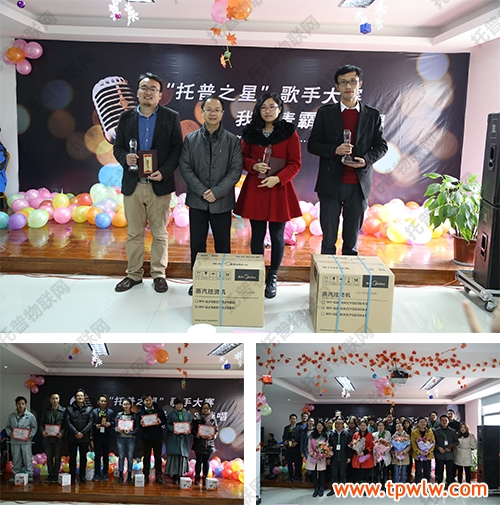 第三輪決賽,選手之間的角逐已經(jīng)進入白熱化,臺下的“親友團”也使出渾身解數(shù)為選手加油,熱情擁抱、鮮花、歡呼,上臺為選手伴舞,比賽已經(jīng)不僅僅局限于選手之間了。在決賽期間,市場部宋煒燁的《愛上一個不回家的人》,深情款款,用一個已婚人的體悟,詮釋了這首傷心情歌,評委打出空前高分,大眾評審團也紛紛舉起了投票牌。銷售部張銀玉,托普儀器唱跳俱佳的歌后加舞后,公司大型活動必不可少的一抹亮麗身影,決賽上的一曲《我是不是你最疼愛的人》引爆全場,穩(wěn)健的臺風更是參賽選手的典范。銷售部另一位同事周藍艦此次帶來的是《獨家記憶》,準確的情感表達,使“珍惜”二字深入人心。他在初賽時演唱的《無所謂》,十分形象的模仿了原唱楊坤的聲音,使人印象深刻。最終,宋煒燁、張銀玉、周藍艦這三位選手殺出重圍,分別奪得了大賽的冠、亞、季軍。