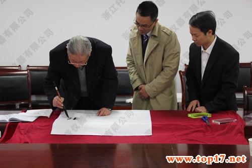 圖為:陳子元院士為托普題詞并與陳渝陽總經(jīng)理、朱旭華副總經(jīng)理合影留念隨后,陳子元院士在陳渝陽總經(jīng)理的陪同下出席了托普儀器全國經(jīng)銷商見面會并作寄語。會議上,陳院士首先肯定了托普陳渝陽總經(jīng)理個人的成就,他說到:陳渝陽畢業(yè)于浙江農(nóng)業(yè)大學,并且通過自己不懈的努力,結合國家宏觀政策對農(nóng)業(yè)的大力支持,結合自己所學的專業(yè)知識,在大家的共同支持和幫助下,既開拓了自己的事業(yè)空間,更可貴的是通過他的努力與實踐,也在很大程度上豐富了我們原先薄弱的農(nóng)業(yè)儀器設備,要知道這也是解決“三農(nóng)”問題的有力措施,對推動農(nóng)業(yè)現(xiàn)代化具有明顯的助推作用。