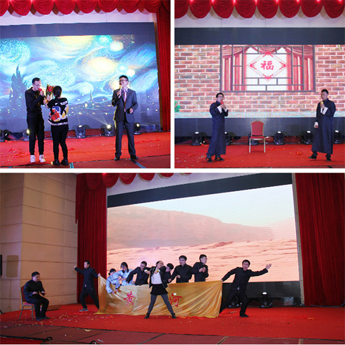 精彩紛呈的“新故事,新起點(diǎn)”2016新春年度盛典在四位支持人的深情開場中拉開序幕。熱情歡樂《金獅送福》領(lǐng)先開演,為大家送來了新年的祝福;勁舞《說愛就愛》,激情火爆,樂觀向上的精神風(fēng)貌展現(xiàn)得淋漓盡致;研發(fā)團(tuán)隊的舞臺劇《電影院那些事》演繹了公司研發(fā)人員豐富飽滿的內(nèi)心世界。一首《飄雪》,瞬間將我們就帶入了純情浪漫模式。古箏演奏,優(yōu)雅悠揚(yáng);激情昂揚(yáng)的《保衛(wèi)黃河》將整個晚宴推向高潮;銷售部老男人們的《群魔亂舞》讓大家更是樂的開懷暢飲!期間的互動環(huán)節(jié)及歡樂大抽獎讓全場氛圍熱烈而又充滿期待,高潮迭起!