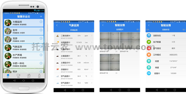 - 農林(農業)“四情”監測系統發表日期:2021-02-25 來源:托普云農 瀏覽次數:203627次托普農業物聯網農林“四情監測預警系統”(墑情、苗情、蟲情、災情)也叫農業四情監測系統,簡稱農林“四情”監測系統,它以先進的無線傳感器、物聯網、云平臺、大數據以及互聯網等信息技術為基礎,由墑情傳感器、苗情災情攝像機、蟲情測報燈、網絡數字攝像機、作物生理生態監測儀,以及預警預報系統、專家系統、信息管理平臺組成。各級用戶通過Web、PC與移動客戶端可以訪問數據與系統管理功能,對每個監測點的病蟲狀況、作物生長情況、災害情況、空氣溫度、空氣濕度、露點、土壤溫度、光照強度等各種作物生長過程中重要的參數進行實時監測、管理。系統聯合作物管理知識、作物圖庫、災害指標等模塊,對作物實時遠程監測與診斷,提供智能化、自動化管理決策,是農業技術人員管理農業生產的“千里眼”和“聽診器”。