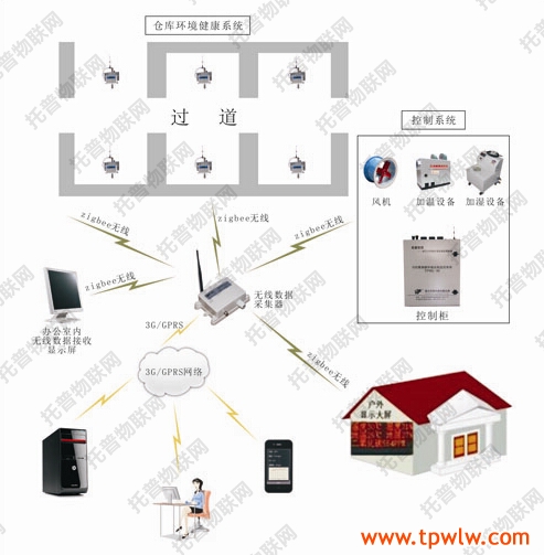 為此,浙江托普云農(nóng)科技股份有限公司潛心研發(fā)了“農(nóng)產(chǎn)品窖藏監(jiān)測(cè)預(yù)警管理系統(tǒng)”,實(shí)現(xiàn)對(duì)倉(cāng)庫(kù)環(huán)境實(shí)時(shí)監(jiān)測(cè),即時(shí)預(yù)警,并能夠自動(dòng)控制通風(fēng)、加溫設(shè)備,確保倉(cāng)儲(chǔ)安全,并對(duì)監(jiān)測(cè)數(shù)據(jù)進(jìn)行科學(xué)分析,進(jìn)而智能匹配農(nóng)產(chǎn)品貯藏的最佳環(huán)境條件,有效預(yù)防和減輕馬鈴薯腐爛,確保安全過(guò)冬減少損失,同時(shí)避開(kāi)上市銷售高峰時(shí)期,實(shí)現(xiàn)反季節(jié)銷售,大幅提高銷售價(jià)格,增加農(nóng)民收入。2、系統(tǒng)架構(gòu)