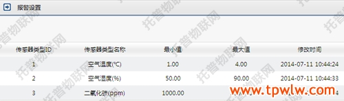 當(dāng)空氣溫/濕度、CO2濃度等環(huán)境監(jiān)測(cè)數(shù)據(jù)超過(guò)設(shè)定的預(yù)警值時(shí),系統(tǒng)自動(dòng)預(yù)警,生成預(yù)警事件,通過(guò)手機(jī)短信及網(wǎng)頁(yè)報(bào)警提示管理人員或工作人員進(jìn)行管理和控制。該模塊還可對(duì)系統(tǒng)產(chǎn)生的各個(gè)環(huán)境預(yù)警事件進(jìn)行詳細(xì)記錄,便于事后原因分析和對(duì)工作人員工作質(zhì)量進(jìn)行跟蹤監(jiān)督。