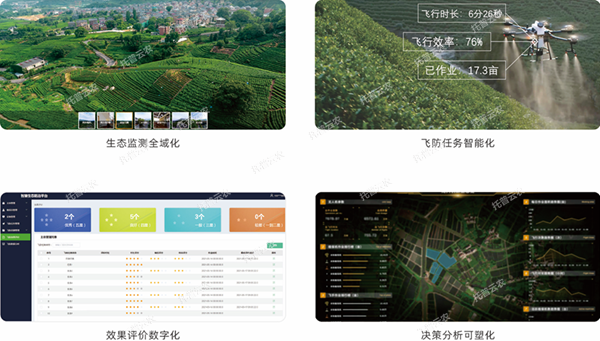 2、生態防控:對于大面積蟲害爆發期的防治需求,在平臺上發布飛防公告,通知飛防服務公司進行響應,并對無人機執行飛防任務效果的線上評價和考核。通過平臺將不同品牌的無人機數據進行匯總整理,為科學決策并制定合理化防控任務提供數據支撐。